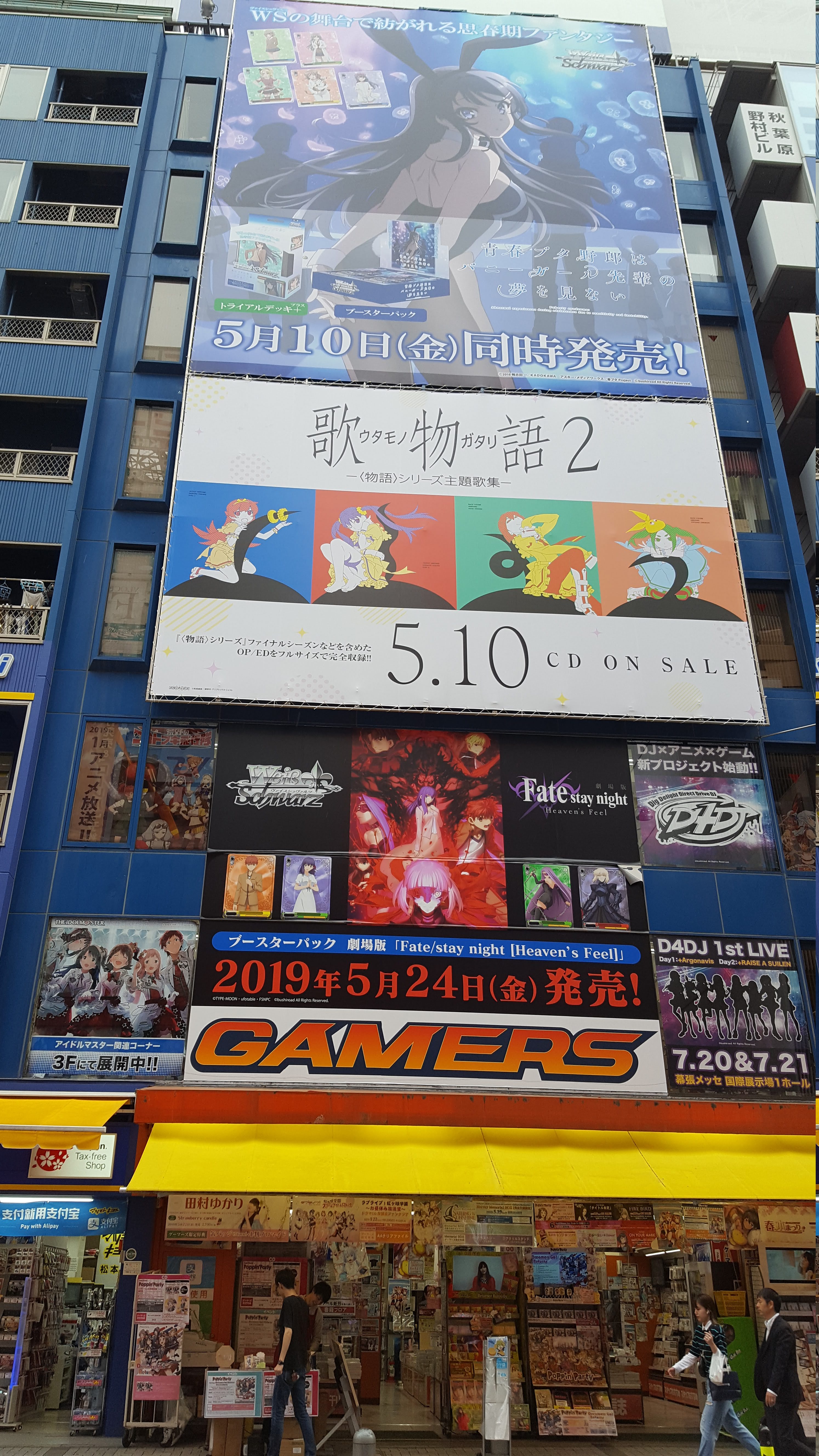 Das war aber nur der Anfang des Wahnsinns. Wieder auf den Straßen Akihabaras, nahmen wir unsere Umgebung erst richtig war. Die Wände der Hochhäuser sind vollgepflastert mit Bannern und Reklame für ansässige Geschäfte, aber auch die neuesten Games, Anime-Merchendise, Maid-Cafes und viele weitere Arten von Konsummedien. Die Haupt- und Nebenstraßen füllen sich zu allen Tages- und Nachtzeiten mit Anhängern aller nur erdenklichen Fangemeinden, die zum Shoppen, zur Begutachtung von Schaufenstern oder auf der Suche nach dem ganz speziellen Relikt sind, von dessen Existenz in den finstersten Ecken des Internets gemunkelt wird.